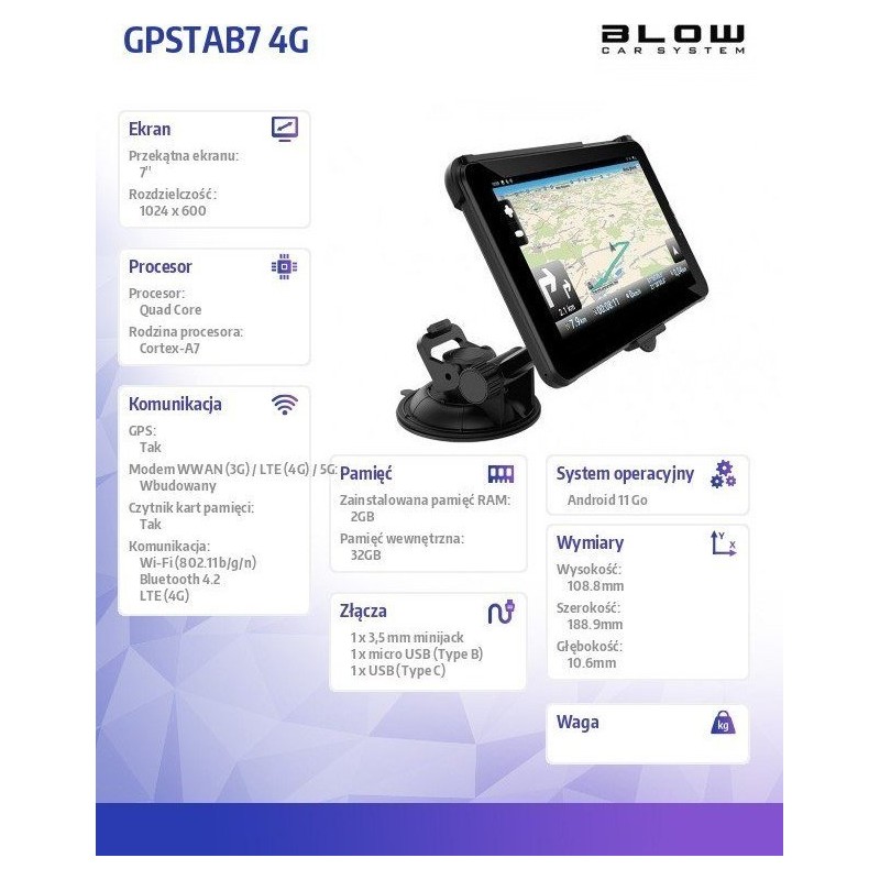 Nawigacja GPS Blow GPSTAB7 7" 32 GB 4G Czarny (79-056)