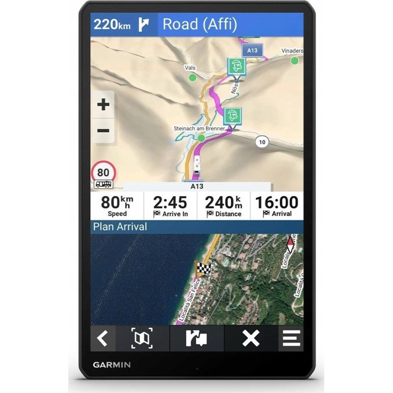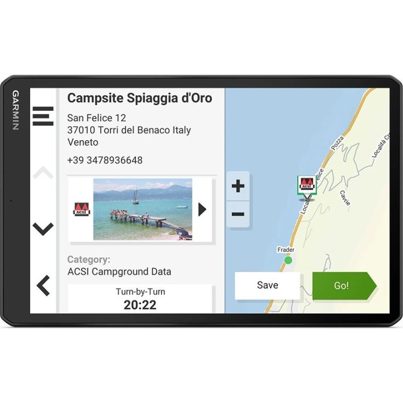 Z pomocą Camper 1095 z bardzo dużym wyświetlaczem możesz wyznaczać niestandardowe trasy specjalnie dobrane do rozmiaru i masy pojazdu, a realistyczne zdjęcia lotnicze pomogą Ci bez problemów dotrzeć do miejsca postojowego dla kamperów lub pola namiotowego.