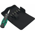 Etui tekstylne ze strefą z miękkiej tkaniny na odwrocie. Za pomocą dołączonego samoprzylepnego paska z rzepem etui można przykleić do elementów systemu do transportu narzędzi Wera 2go, lub ścianki, półki czy wózka warsztatowego.