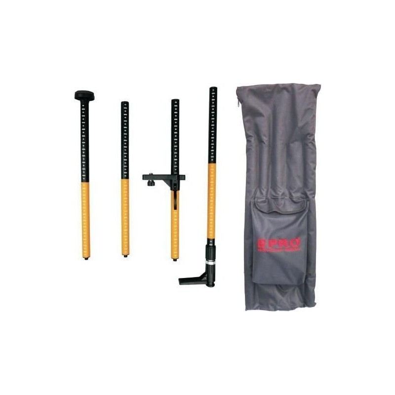 Zestaw: dolny element tyczki o budowie teleskopowej, ze stopką ułatwiającą klinowanie, o górnej końcówce z otworem na śrubę o średnicy 5/8” elementy przedłużające tyczkę, zakończone na obu końcach gwintem umożliwiającym przykręcenie fragmentu do dolnej i górnej części tyczki (60 cm - 3 sztuki, 30 cm - 1 sztuka) ruchomy, uniwersalny uchwyt mocujący z mosiężnymi śrubami o gwintach 5/8” oraz 1/4”, służący do umieszczania lasera na tyczce okrągła podstawka o średnicy 8 cm i wysokości 4 cm, służąca do mocowania tyczki między podłożem a sklepieniem pokrowiec