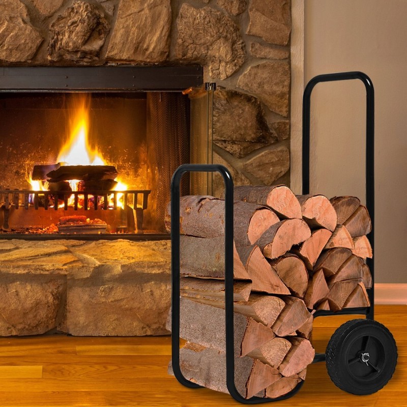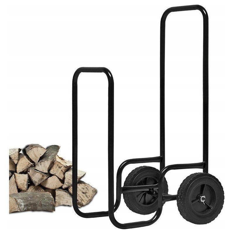 STOJAK KOSZ WÓZEK NA DREWNO KOMINKOWE KOMINEK Praktyczny wózek pozwala komfortowo zwieźć dostawę drewna opałowego. Dzięki gumowym oponom, wózek można łatwo i bezpiecznie kontrolować.