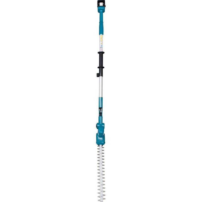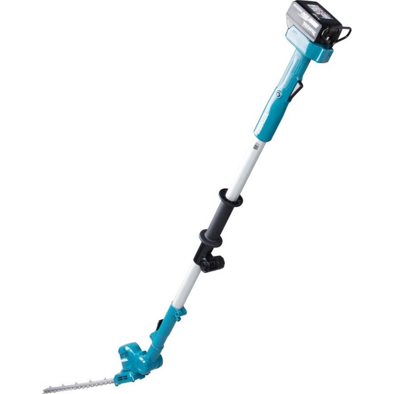 Nowe nożyce do żywopłotu DUN461, zasilane akumulatorem Li-Ion 18 V LXT® firmy Makita, wyposażone są w ostrze tnące o długości 46 cm i są idealne do przycinania wysokich i trudno dostępnych żywopłotów. 10 stopniowa regulacja ustawienia kąta głowicy tnącej (regulacja w zakresie od 60° w górę do 75° w dół - co 15°) pozwala na pracę i przycinanie w różnych pozycjach. Teleskopowa konstrukcja, pozwala beznarzędziowo regulować długość całkowitą urządzenia, w zależności od potrzeb. Możliwość złożenia i skrócenia w celu łatwiejszego transportu i przechowywania. Posiada przycisk blokady włącznika dostępny z obu stron narzędzia.
