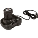 Wymienny akumulator litowo-jonowy 10,8 V o pojemności 2 Ah, zintegrowany wskaźnik poziomu naładowania akumulatora i szybka ładowarka, która ładuje narzędzia do koszenia trawy w ciągu jednej godziny, zapewniają stałą i szybką gotowość do użycia.