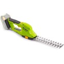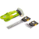Zestaw zawiera dwie wymienne listwy tnące: jedną do trawy, a drugą do ogrodzenia, co sprawia, że nożyce są niezwykle wszechstronne. Listwa tnąca do trawy, o długości roboczej 93 mm i szczelinie międzyzębnej 20 mm, umożliwia precyzyjne przycinanie krawędzi trawnika. Z kolei listwa ścinająca do ogrodzenia, z długością roboczą 197 mm i szczeliną międzyzębna 8 mm, doskonale sprawdza się w przycinaniu żywopłotów i innych roślin wzdłuż ogrodzeń. Dzięki tym dwóm opcjom, narzędzie jest dostosowane do różnych zadań ogrodowych.