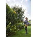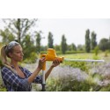 Do przycinania żywopłotu służy wycinane laserowo ostrze o długości 45 cm, a dzięki rozstawionym zębom o 18mm oraz obracanej głowicy o 112° umożliwia przycinanie nawet średniej grubości gałązek.