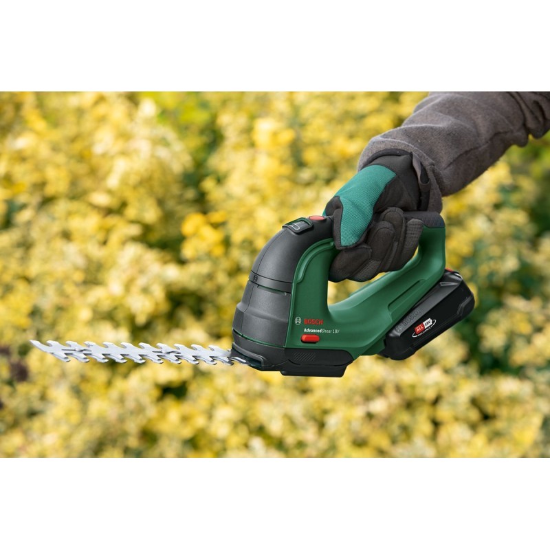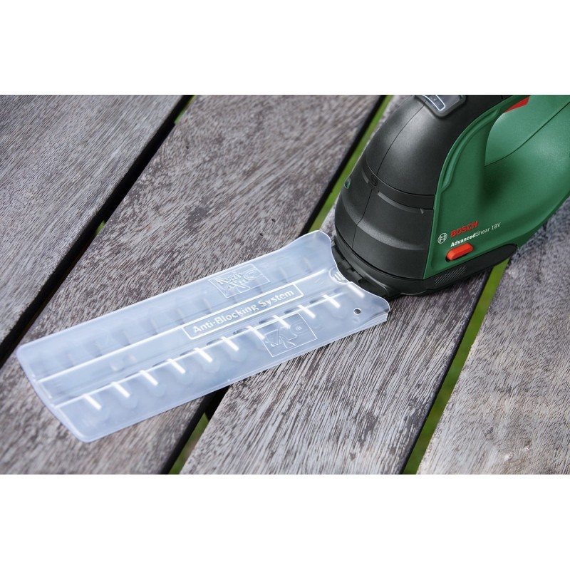 Wszechstronny, akumulatorowy model AdvancedShear 18V-10 jest przeznaczony do obsługi jedną ręką i oferuje ostrza do formowania i pielęgnacji krzewów lub przycinania trawy i krawędzi trawnika. Dzięki akumulatorowi 18V POWER FOR ALL narzędzie zapewnia największą wydajność cięcia w swojej klasie. Opatentowany system Anti Blocking i szwajcarskie ostrza Dual Action zapewniają imponującą precyzję oraz ciągłość cięcia bez blokowania się narzędzia przy cięciu grubszych gałęzi. Nożyce do trawy i krzewów oferują do 85 minut czasu pracy na jednym cyklu ładowania akumulatora i umożliwiają komfortowe wykonanie prac pielęgnacyjnych w ogrodzie. Narzędzie jest częścią POWER FOR ALL ALLIANCE. Jeden akumulator może być wykorzystywany do zasilania wielu narzędzi różnych marek.