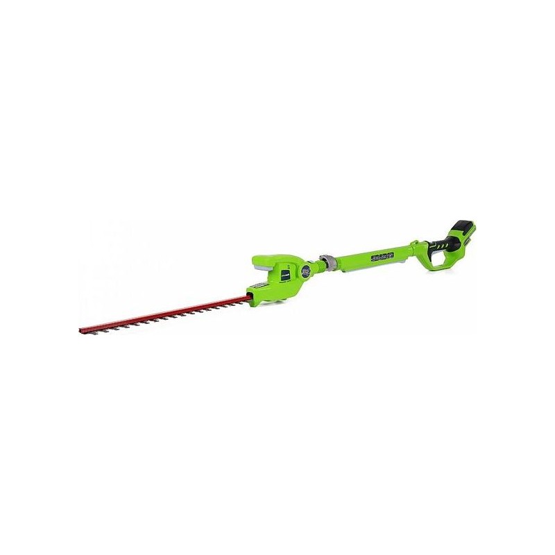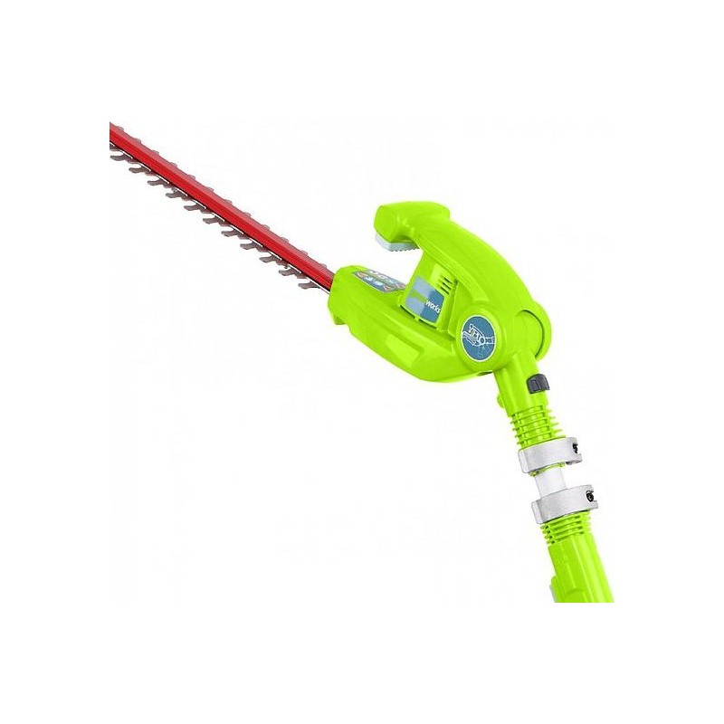 Podstawowy model nożyc do żywopłotu na wysięgniku Greenworks z kolekcji 24V. Z łatwością radzi sobie z formowaniem koron drzew, krzewami ścinanymi i przycinającymi, żywopłotami i innymi roślinami ozdobnymi. Główną zaletą modelu jest wielopozycyjne ustawienia głowicy nożyc (do 7 pozycji). Ułatwia to prace związane z pielęgnacją drzew i umożliwia przycinanie pod różnymi kątami na wysokościach bez potrzeby stawania na drabinie.