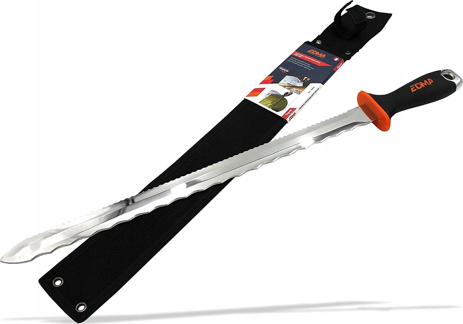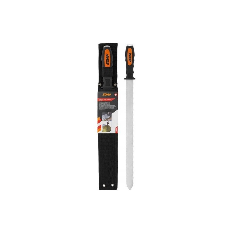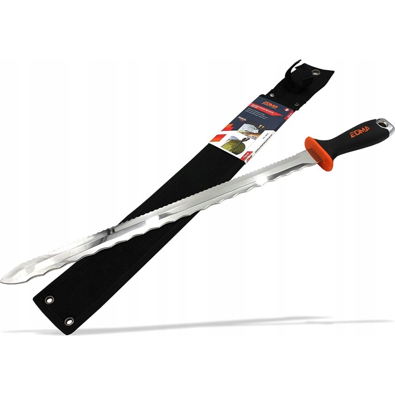 - Nóż do wykładzin dywanowych i podłogowych EDMA, wykonany z wysokiej jakości stali z dwustronnym zębatym ostrzem. Jedno ostrze służy do cięcia dywanów, a drugie do podłogowych wykładzin.