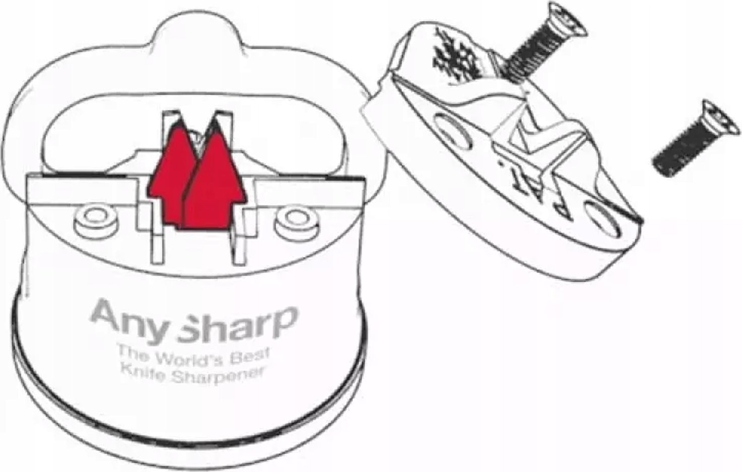 - Skuteczność AnySharp® zapewniają trójkątne płytki ostrzące, wykonane z węglika wolframu.