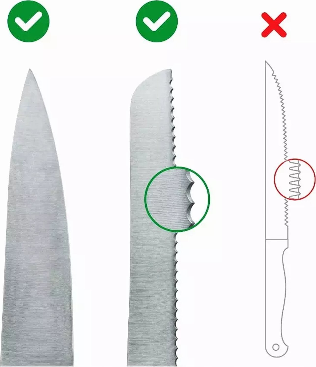 - noży z drobnymi ząbkami, np. noża do steków.