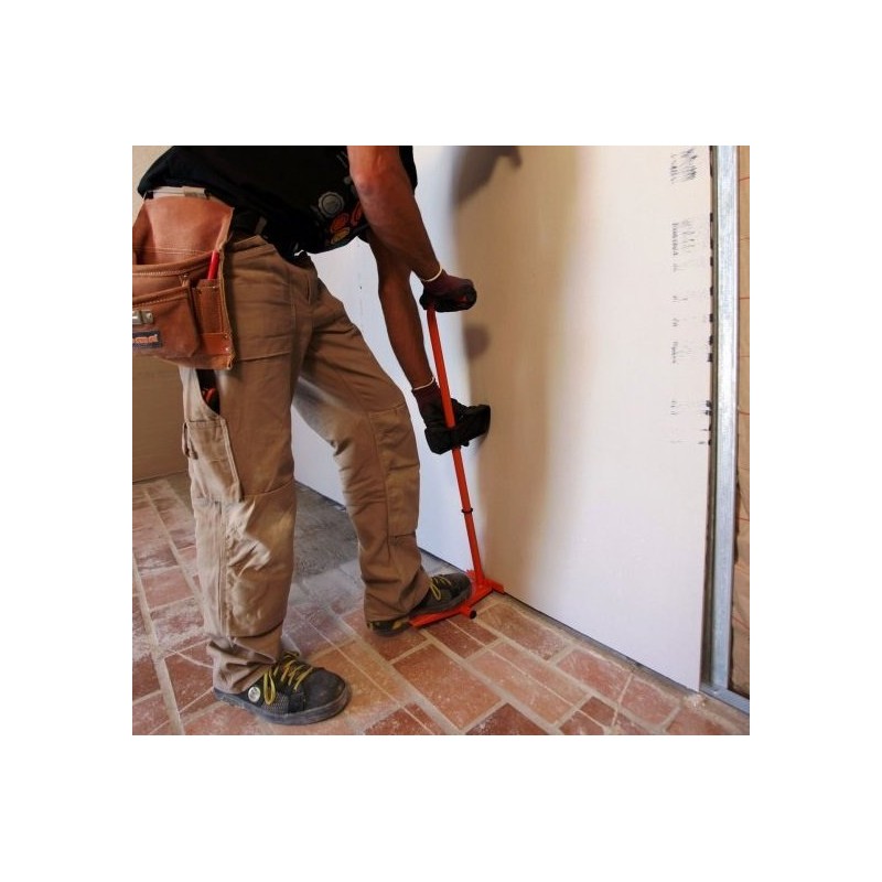 Pozwala na samodzielne działanie za pomocą ruchomego bloku. Możliwość podniesienia i przytrzymania płyty lub panelu izolacyjnego na miejscu, poprzez przykręcenie go do metalowej ramy. Wytrzymałe narzędzie, łatwe w użyciu. Przesunięty uchwyt. Skośna krawędź, aby uniknąć uszkodzenia płyty gipsowo-kartonowej.