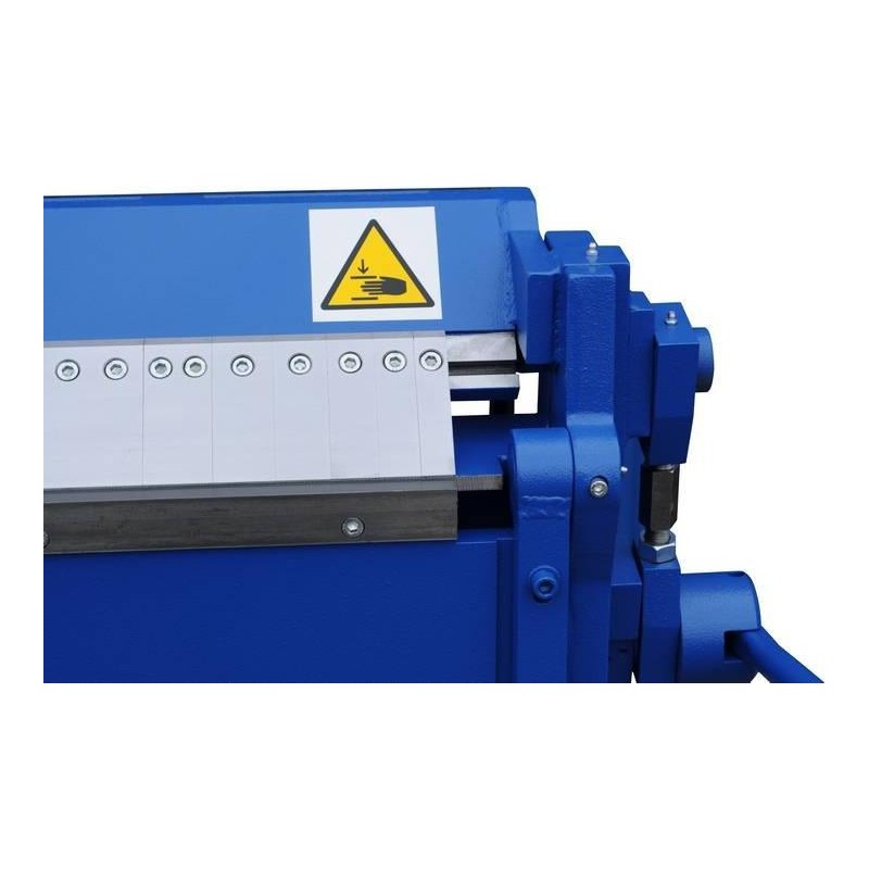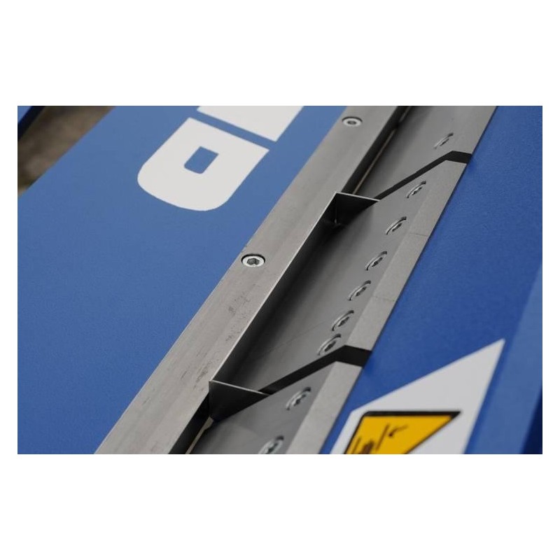 Zaginarka mająca zastosowanie szczególnie do wykonywania obróbek typu kominowe daszki okapowe i zakończenia ogniomurów. Belka dociskowa jest wyposażona w dzielone noże segmentowe o wymiarach: 25/30/35/40/45/50/75/100/150/200/250/270 mm. Noże są wykonane ze stali jakościowej pozwalającej na długoletnią pracę zaginarki przy zachowaniu odpowiednich parametrów gięcia.