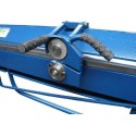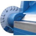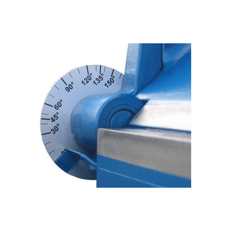 Operacji zaginania dokonuje się poprzez obrót za pomocą uchwytu o określoną wartość kątową belki gnącej. Siłownik gazowy wspomaga podnoszenie belki gnącej. Kątomierz zamocowany po lewej strony zaginarki patrząc od przodu wskazuje aktualny kąt zagięcia blachy.