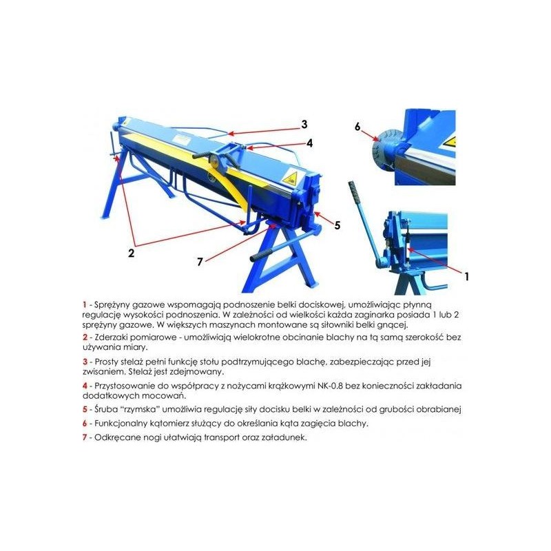 Głównymi elementami roboczymi zaginarki są belki: stała, dociskowa i gnąca.