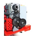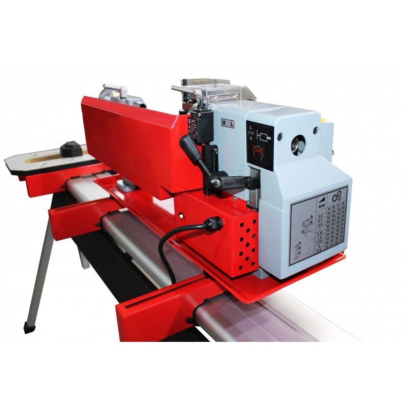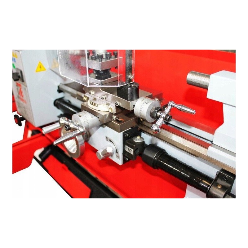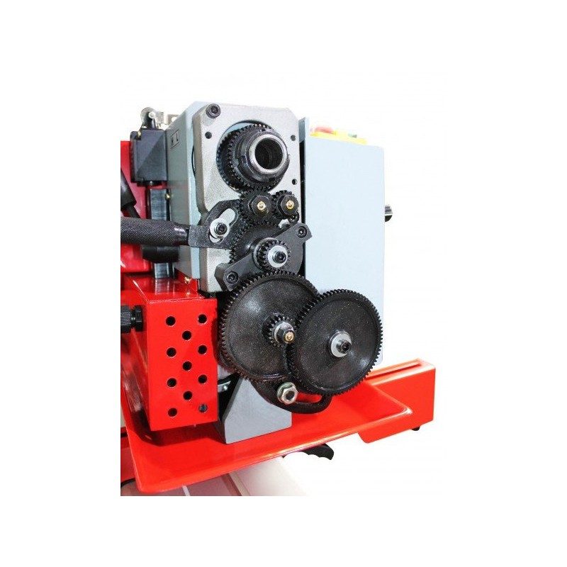 Tokarka została wyposażona w funkcję automatycznego toczenia, co znacząco ułatwia proces obróbczy. Dzięki wymiennym przekładniom, użytkownik ma możliwość frezowania szerokiego zakresu gwintów, co czyni to urządzenie niezwykle wszechstronnym. Dodatkowo, przełącznik lewo-prawo na panelu sterowania zwiększa komfort pracy.