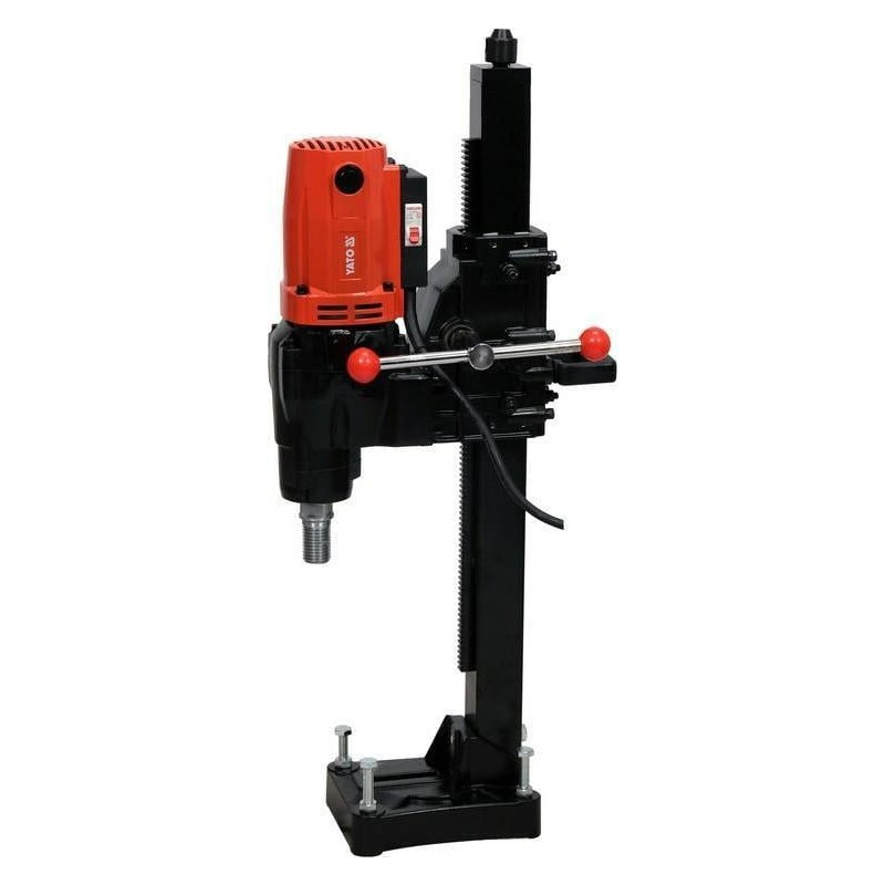 Przemysłowa wiertnica diamentowa YT-81983 przeznaczona jest do wiercenia w żelbecie, betonie oraz kamieniu naturalnym. Tego typu urządzenie jest niezbędne w branży hydraulicznej do wiercenia pod rury kanalizacyjne przechodzące przez stropy budynków, jak również podczas montażu systemów wentylacji i klimatyzacji (branża HVAC) oraz pompy ciepła, czy kanalizację burzową (wiercenie w kręgach).