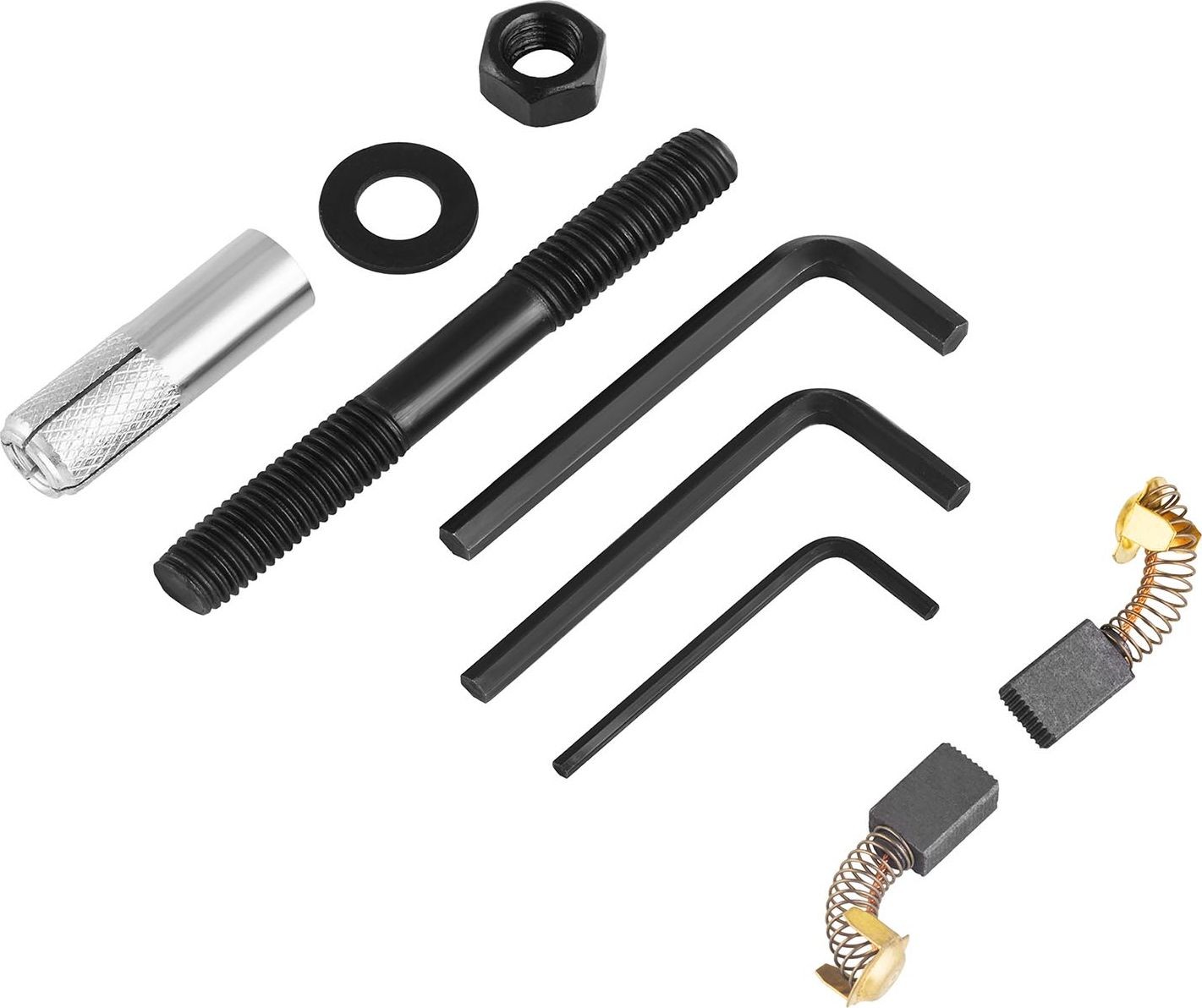 - Wiertnica do betonu - Wąż do wody 3,1 m - Obracany uchwyt - Klucze imbusowe - 3 szt. - Tylny uchwyt prowadnicy - Śruba kotwiąca - Szczotki węglowe - 2 szt. - Przewód zasilający 3,2 m z modułem bezpieczeństwa PRCD - Instrukcja PL