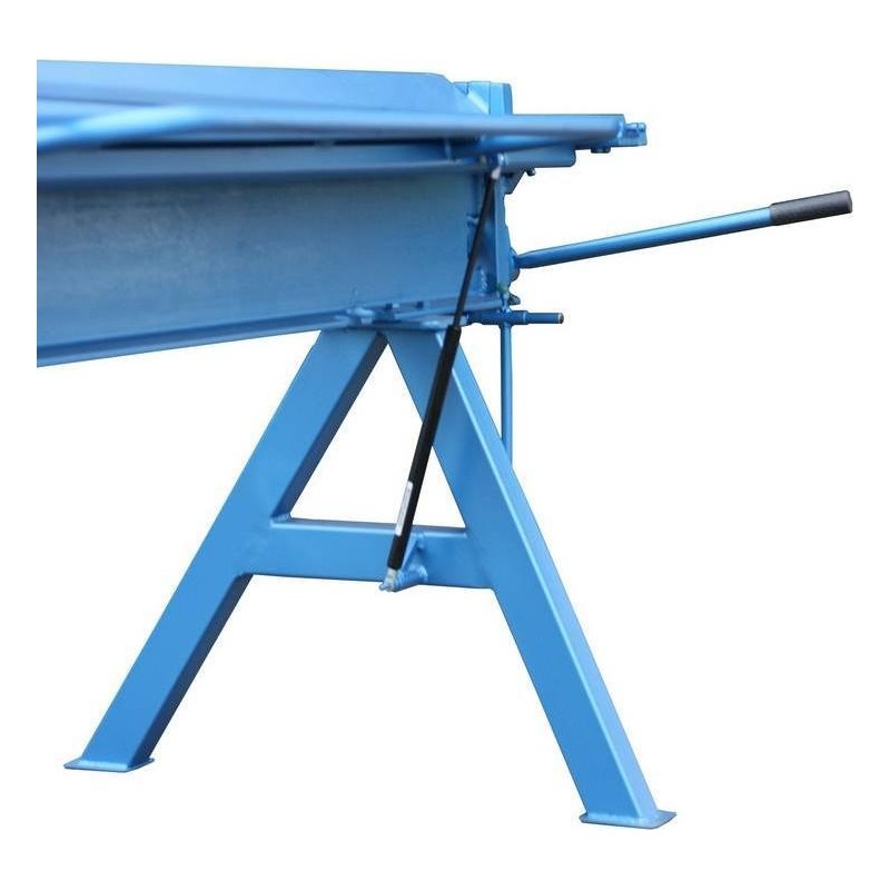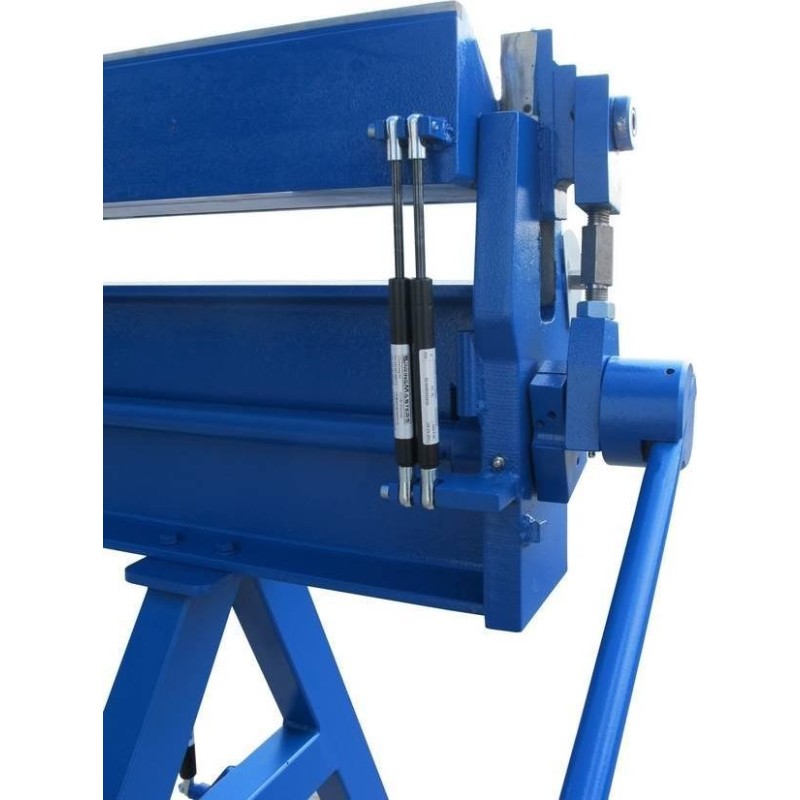Operacji zaginania dokonuje się poprzez obrót za pomocą uchwytu o określoną wartość kątową belki gnącej. Dwa siłowniki gazowe wspomagają podnoszenie belki gnącej. Kątomierz zamocowany po lewej strony zaginarki patrząc od przodu wskazuje aktualny kąt zagięcia blachy.
