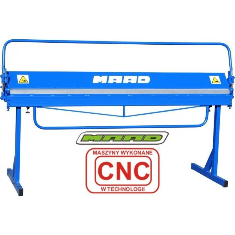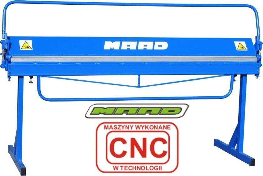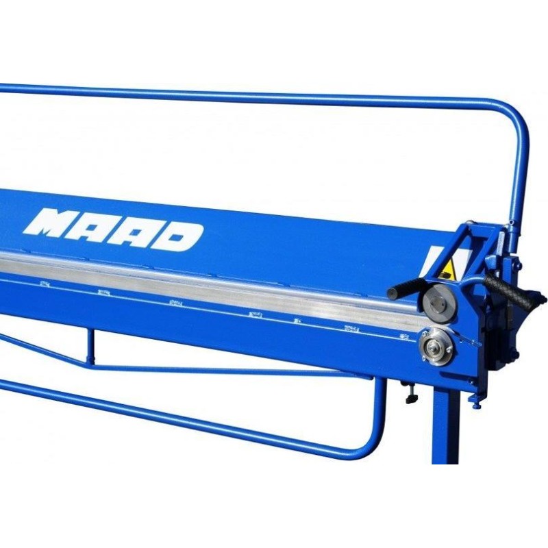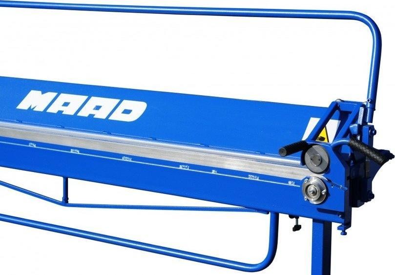 Nowa konstrukcja Zaginarki MAAD ZGL-2000/0.7 pozwoliła uzyskać bardzo niską masę urządzenia 149 kg przy zachowaniu wysokich parametrów pracy. Specjalnie wyfrezowany kapinos na belce dociskowej pozwala zagiąć blachę do kąta 155°. Ogromną zaletą zaginarki ZGL-2000/0.6 jest jej wszechstronność w wykonywanych obróbkach blacharskich oraz możliwości ich wykonania przez jedną osobę przez rączkę dociskową umieszczoną na całej długości maszyny. Wąska belka zaginająca (15 mm) daje pewność na wykonanie wielu skomplikowanych obróbek dekarskich!