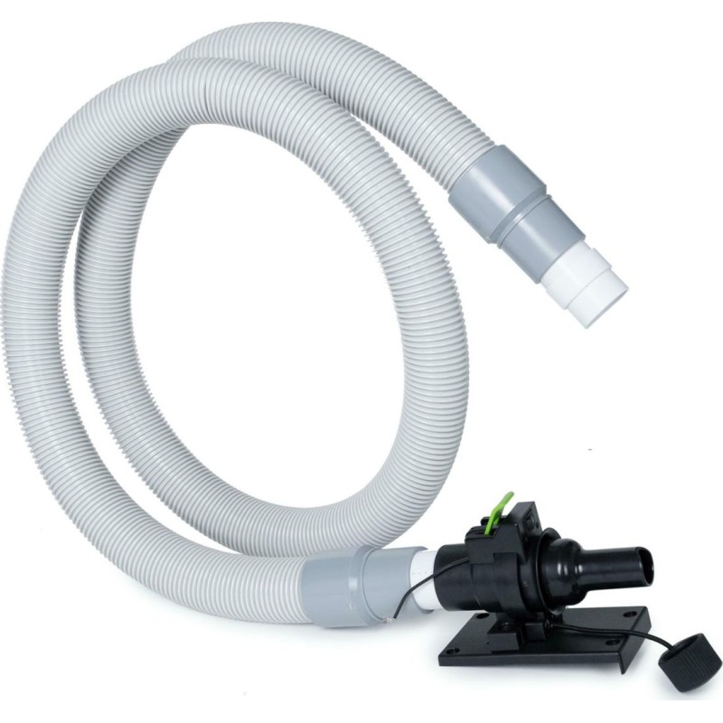 W systemie RV stosujemy standardowe rury PVC o średnicy 50,8 mm przeznaczone do systemów centralnego odkurzania lub elastyczną tubę instalacyjną, która pełni rolę przyłącza. Aby wąż ssący mógł być swobodnie wysuwany i chowany potrzebne są specjalne łuki o wydłużonym kącie (takie same jak w systemie HAH) lub jego połączenie z elastyczną tubą.Gniazdo do systemu przykręcamy z lewej lub prawej strony szafki lub szafy,a dzięki elastycznemu przyłączeniu możemy go zamontować tam gdzie montaż standardowej kasety był nie możliwy np. w szufladach cargo.