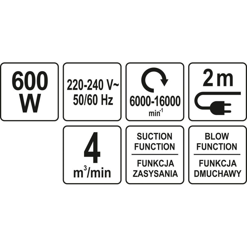 - Funkcje: Odkurzanie, Dmuchawy