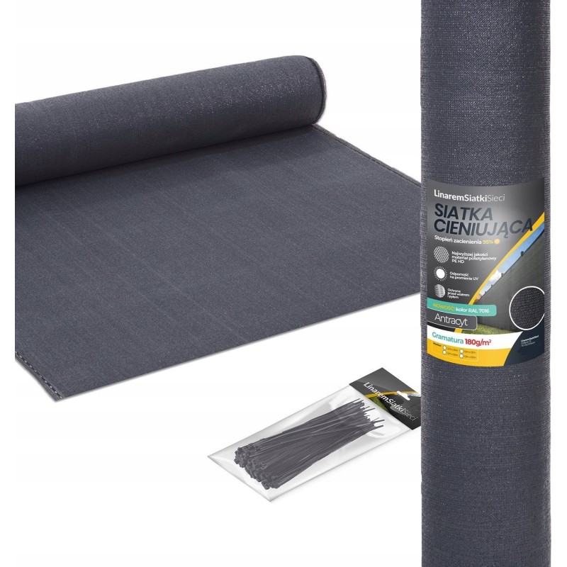 SIATKA CIENIUJĄCA 95% LINAREM SIATKISIECI 180g/m2 GRAFITOWA W ROLCE 1,2x10m