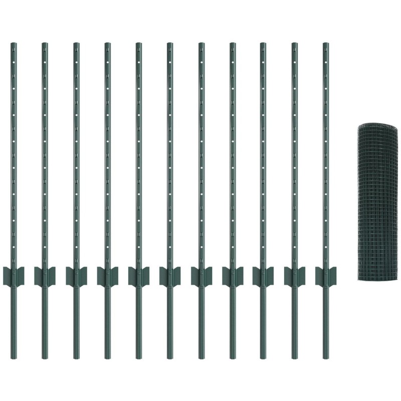 vidaXL Ogrodzenie spawane z 11 słupkami U Zielone 0.8x25 m Stal – Idealne rozwiązanie dla Twojego ogrodu