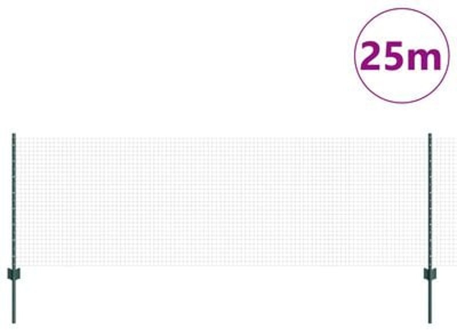 vidaXL Ogrodzenie spawane z 11 słupkami U Zielone 0.8x25 m Stal