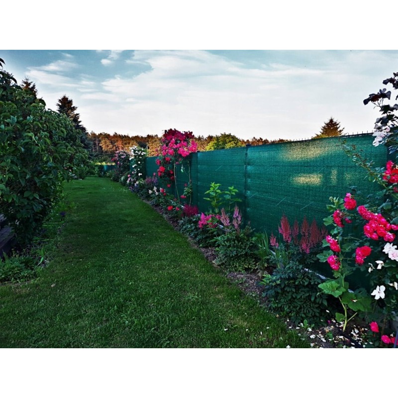 Głęboki kolor zielony siatki cieniującej Linarem SiatkiSieci jest dobrany tak, aby pasował do najbardziej popularnych w Polsce ogrodzeń w tym kolorze.