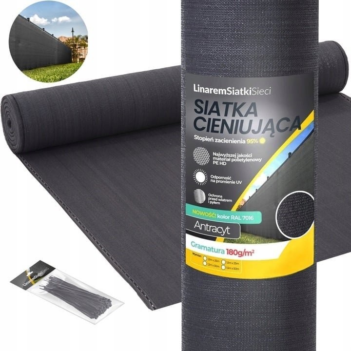 Linarem SiatkiSieci SIATKA CIENIUJĄCA 95% OSŁONA 1,5x25m ANTRACYT MASKUJĄCA NA OGRODZENIE PŁOT