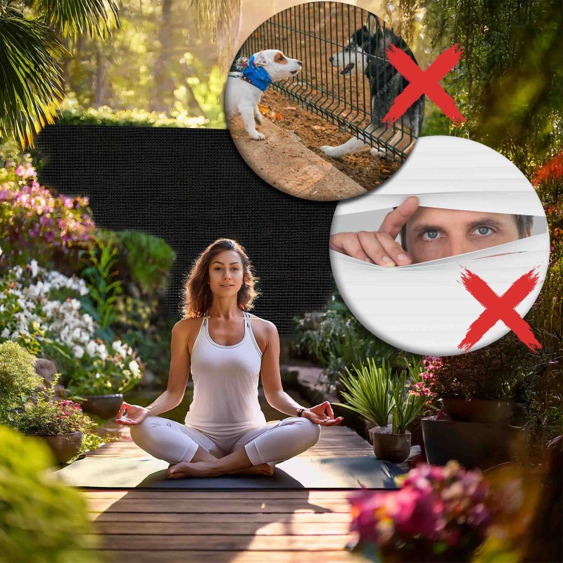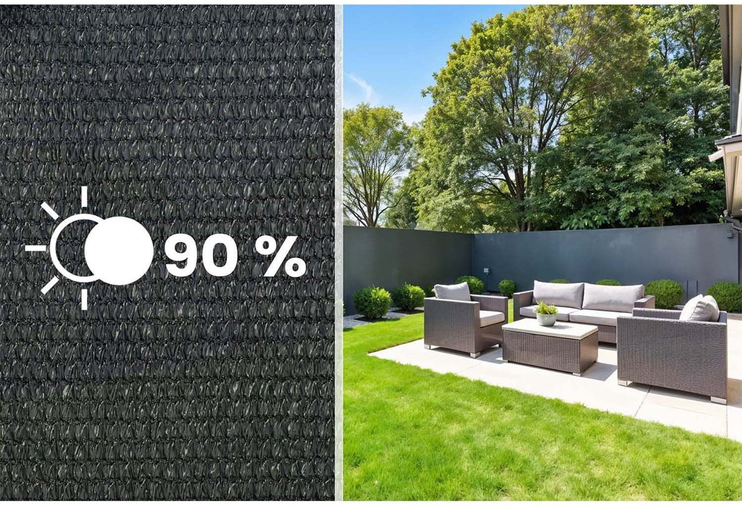 Dzięki aż 90% zacienieniu, siatka skutecznie chroni przed intensywnym słońcem, co jest szczególnie istotne w upalne dni. Oferuje komfort i prywatność, ograniczając bodźce wizualne, co sprzyja relaksowi oraz odpoczynkowi w ogrodzie.