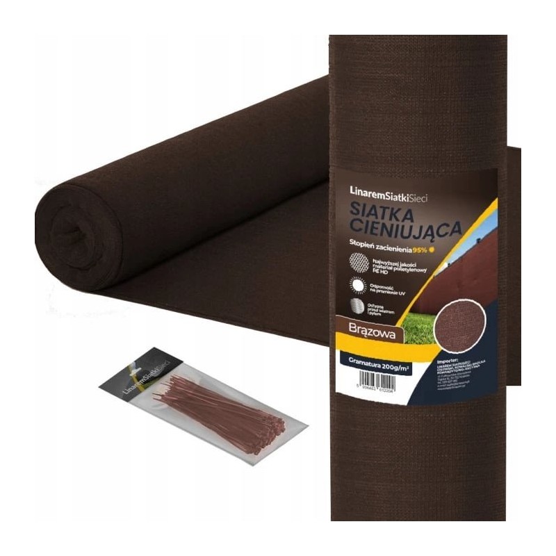 SIATKA CIENIUJĄCA 95% MATA 2x25m MASKUJĄCA NA OGRODZENIE PŁOT 200g +UV BRĄZOWA