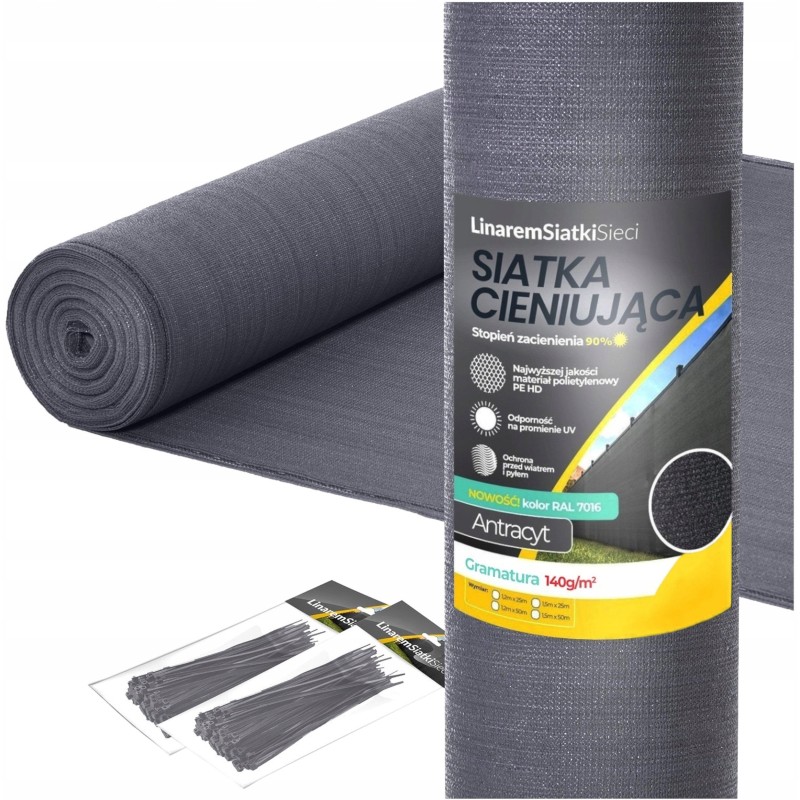 SIATKA CIENIUJĄCA 90% MASKUJĄCA 2x50m OSŁONA NA PŁOT OGRODZENIE ANTRACYT +UV