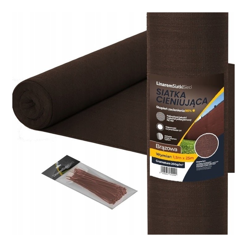 Linarem SiatkiSieci SIATKA CIENIUJĄCA 95% BRĄZOWA 1,2x25 MASKUJĄCA OSŁONA NA OGRODZENIE PŁOT UV