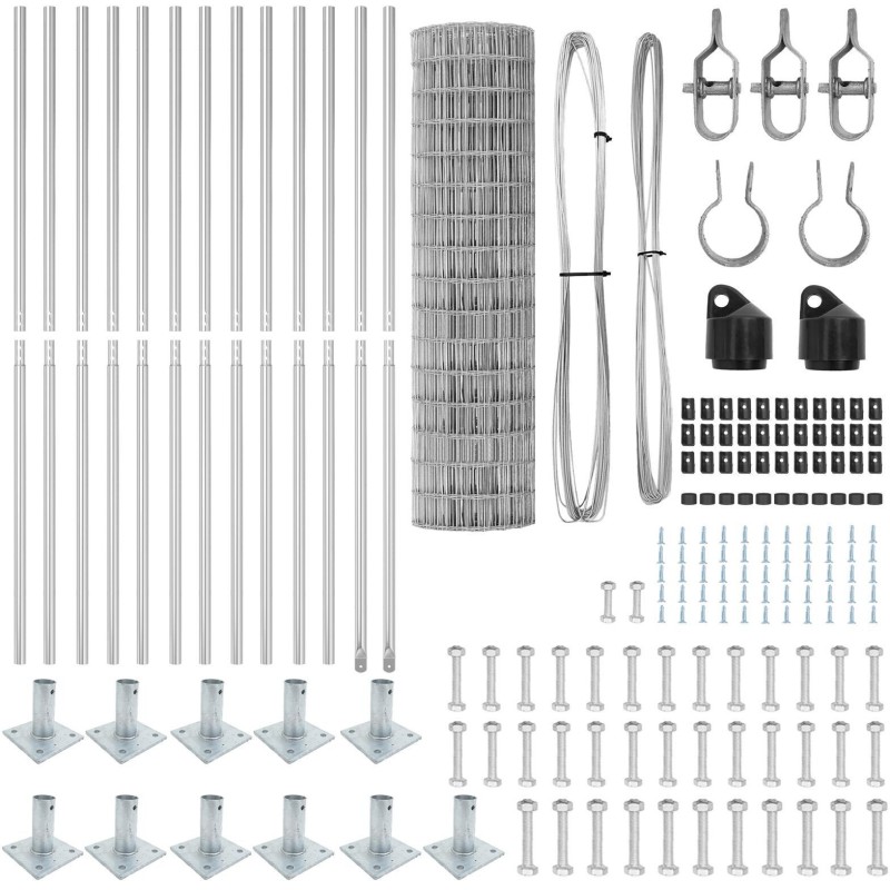 vidaXL Ogrodzenie Euro z 13 słupkami z flanszami 0.8x25 m stal ocynkowana