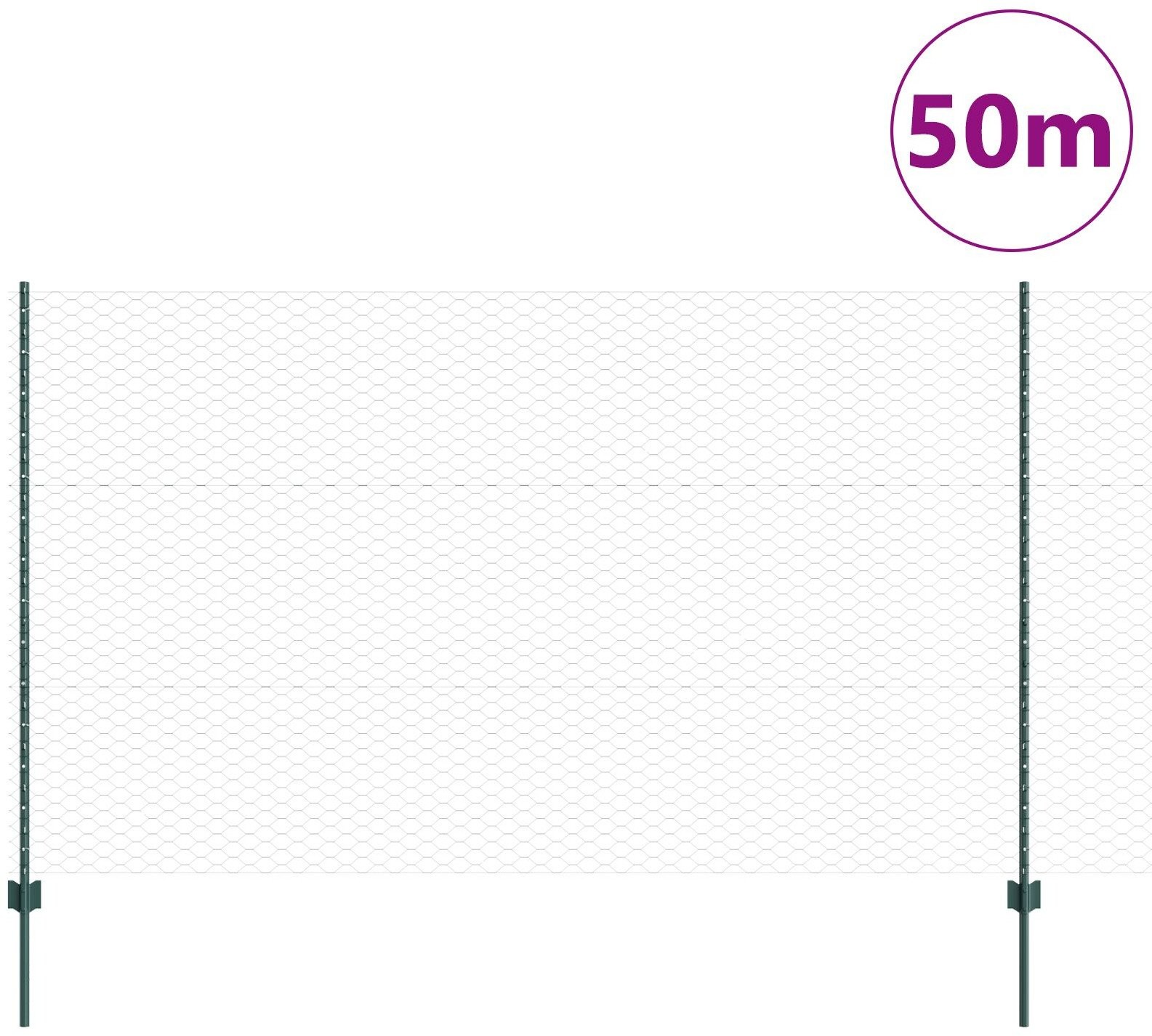 Słupki ogrodzeniowe 11 szt. U-Channel Zielony 140 cm Stal, Ogrodzenie sześciokątne Zielone 1,4x50 m Stal