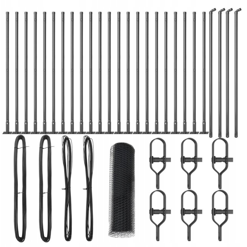 vidaXL Ogrodzenie sześciokątne Szare 0,4x50 m Stal, vidaXL Słupy ogrodzeniowe z podstawami 13 szt. 32mm 50cm Stal ocynkowana