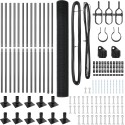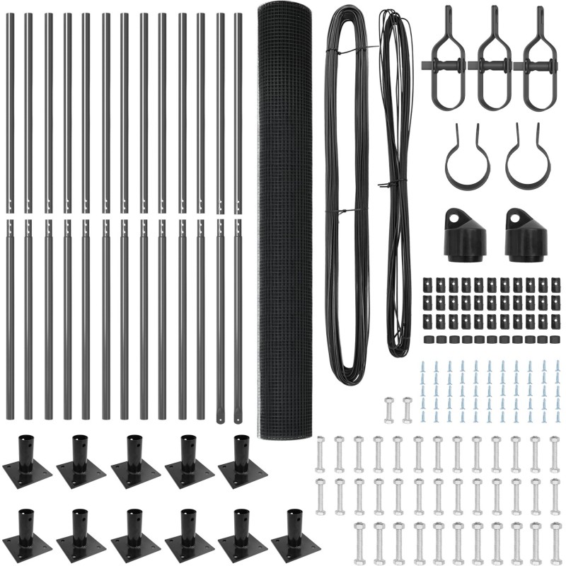 - Kompletny zestaw: zawiera wszystko, co potrzebne — słupki, rolkę siatki 12 x 12 mm, drut napinający i klipsy.