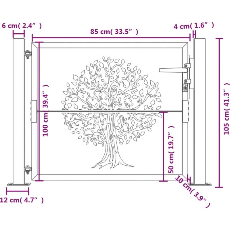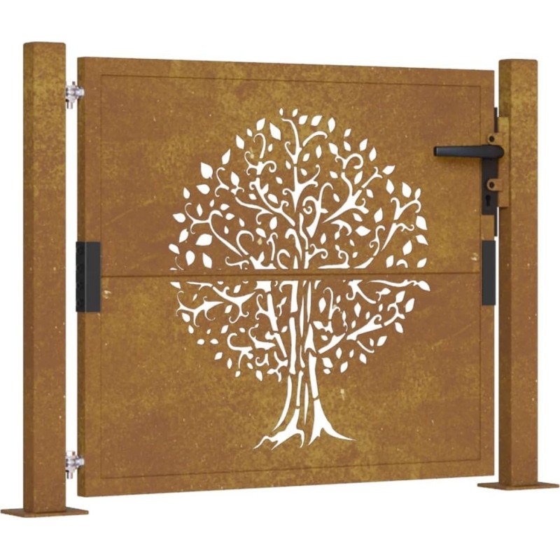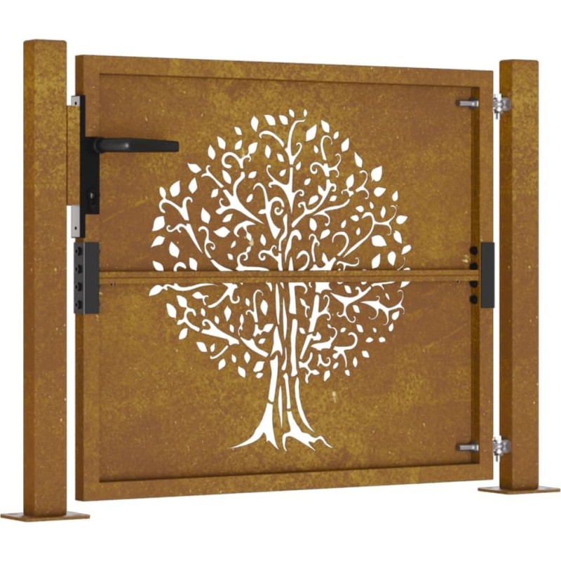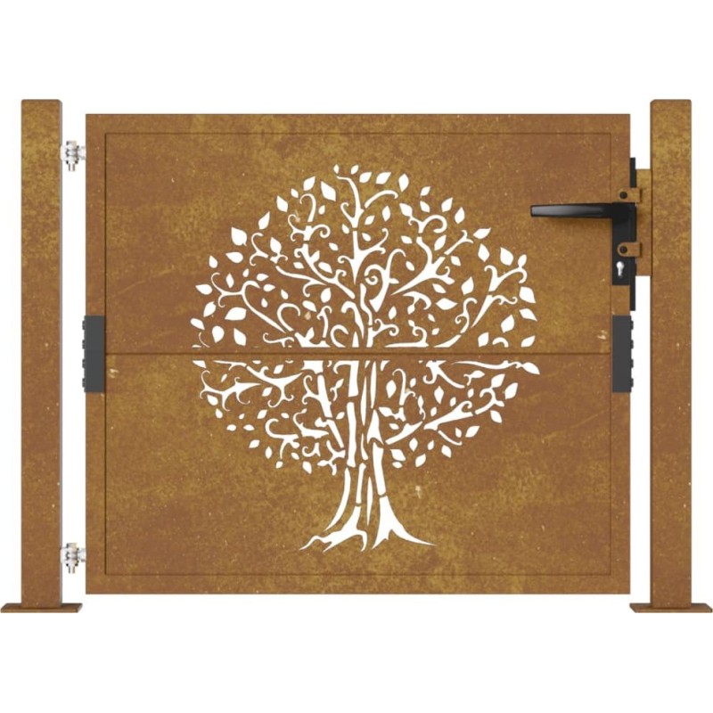 vidaXL Furtka ogrodowa, 105x105 cm, stal kortenowska, motyw drzewa