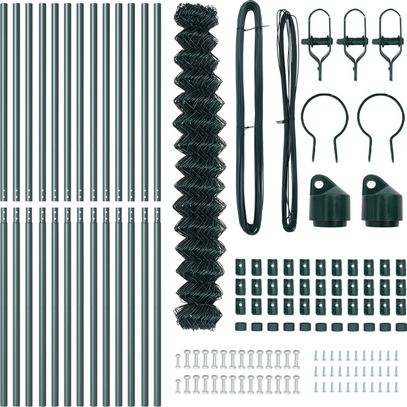 To ogrodzenie z siatki ogniwowej jest świetnym wyborem do stworzenia bezpiecznej granicy na twoim terenie zewnętrznym. Zrobione ze stali ocynkowanej i w klasycznym zielonym kolorze, dobrze wygląda w twoim ogrodzie i jest solidnym wsparciem.