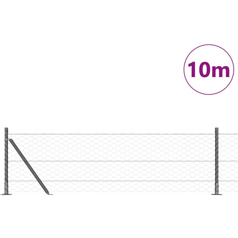 vidaXL Ogrodzenie heksagonalne Szare 0.4x10 m Stal, vidaXL Słupy ogrodzeniowe z podstawami 7 szt 32mm 50cm Stal ocynkowana