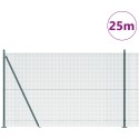 vidaXL Ogrodzenie z drutu spawanego z 13 słupkami z kołnierzem Zielone 1.6x25 m Stalowe