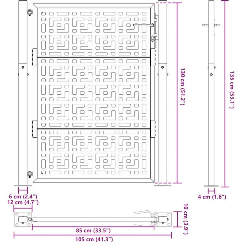 vidaXL Brama ogrodowa 105x130 cm Stal nierdzewna Krzyż wzór