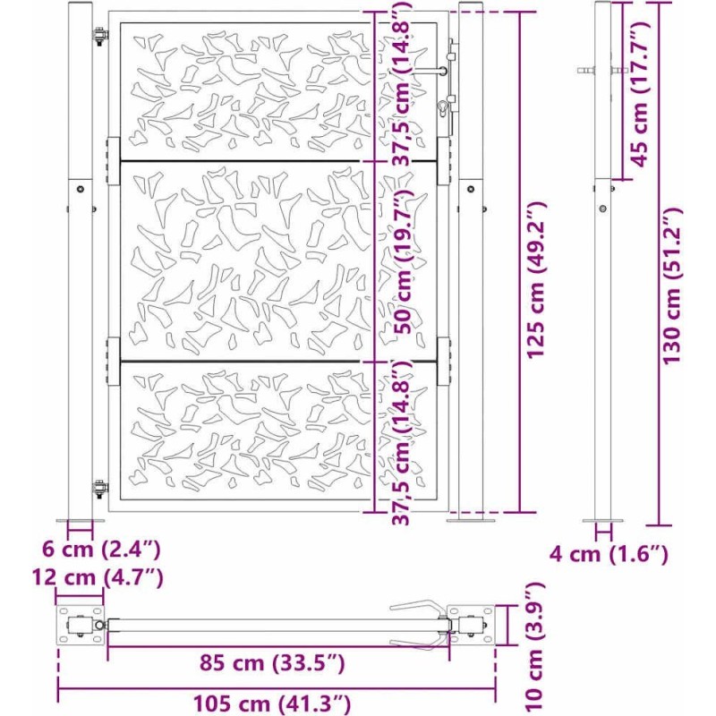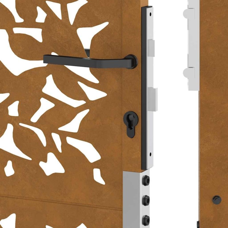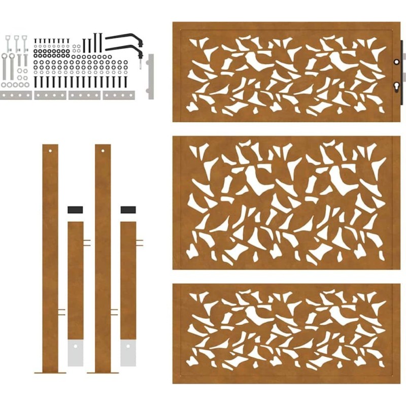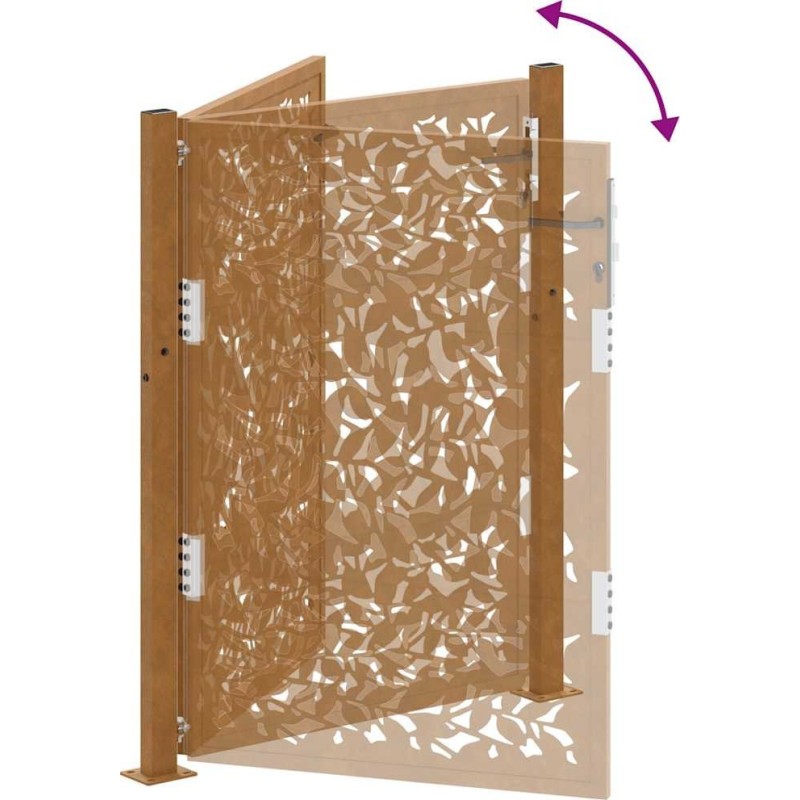 Cechy produktuKolor brązowy stali odpornej na warunki atmosferyczne przyciąga wzrok, a jego wyjątkowa trwałość zapewnia długowieczność. Brama ma piękny, laserowo wycięty wzór, który dodaje unikalnego uroku. Jest wyposażona w solidny system zamykania z trzema kluczami, co zapewnia bezpieczeństwo. Montaż jest łatwy dzięki dołączonym słupkom i akcesoriom.