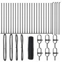 Montaż ogrodzenia jest prosty i szybki, co umożliwia łatwe złożenie ogrodzenia przy użyciu podstawowych narzędzi, takich jak miarka, młotek, klucz płaski, klucz oczkowy i poziomica. Zestaw zawiera wszystkie niezbędne elementy, w tym słupy ogrodzeniowe, rolki siatki oraz elementy mocujące, co znacznie ułatwia proces instalacji.