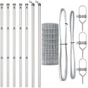 W zestawie znajduje się wszystko, co potrzebne do łatwego montażu ogrodzenia, w tym 13 słupków oraz rolka drutu. Montaż wymaga zaangażowania dwóch osób, co ułatwia prawidłowe zainstalowanie ogrodzenia. Dzięki temu, szybko i sprawnie stworzysz bezpieczną przestrzeń wokół swojego domu.