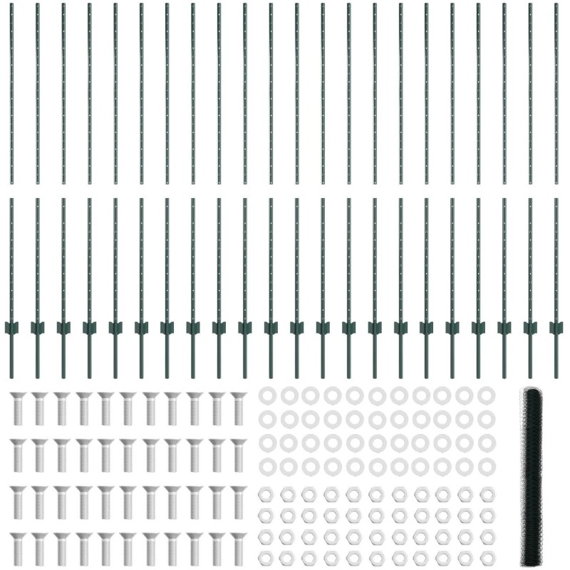 - Pełen zestaw: W każdym zestawie znajdziesz rolkę zielonego płotu oraz pasujące słupki do łatwego montażu na większych terenach.