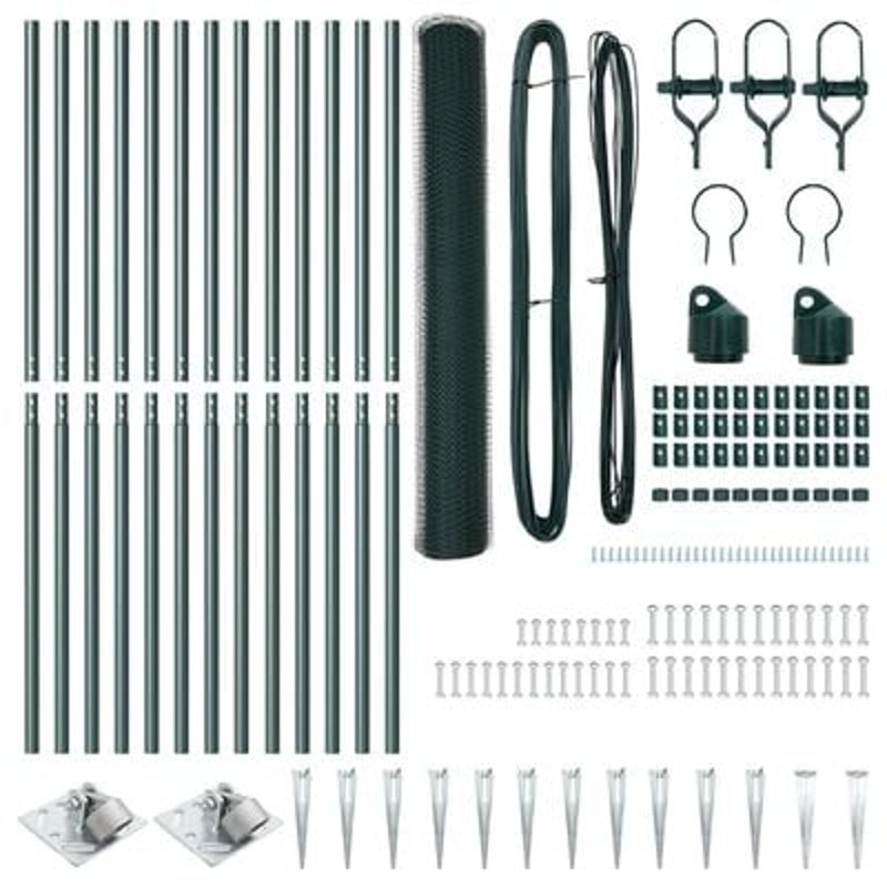 Płot hexagonalny vidaXL Zielony 1.4x25 m Stal, Słupki ogrodzeniowe vidaXL ze szpicem 13 szt. 32 mm 160 cm Stal ocynkowana