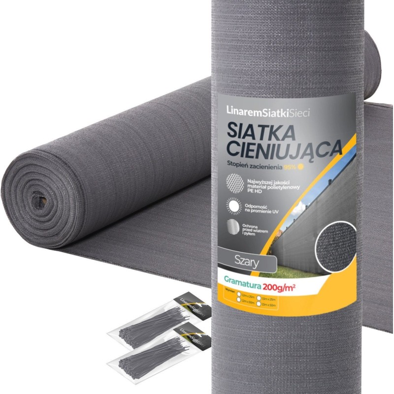 Linarem SiatkiSieci SIATKA CIENIUJĄCA 95% MASKUJĄCA 1,8x50m OSŁONA NA PŁOT OGRODZENIE SZARA +UV