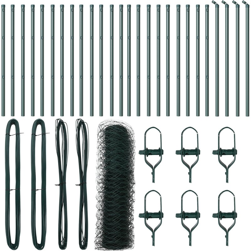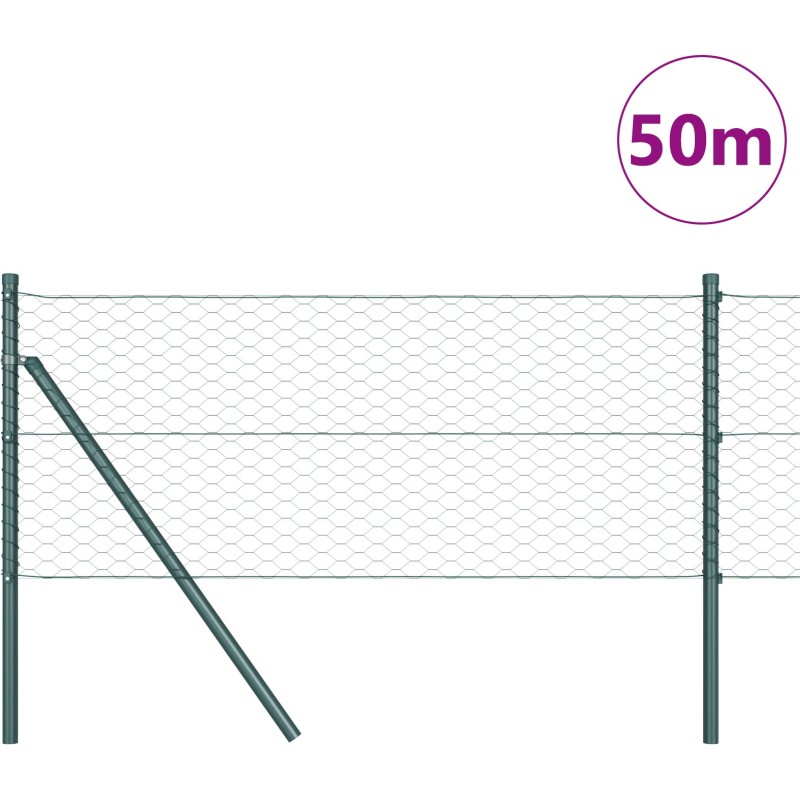 Płot heksagonalny vidaXL Zielony 0.6x50 m Stal, Słupki ogrodzeniowe vidaXL 13 szt. Zielony 32 mm 100 cm Stal ocynkowana